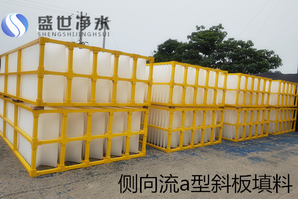??側(cè)向流a型斜板填料又稱A型斜板填料,主要用于水處理污泥沉淀,由斜板片和斜板支撐框架兩部分組合而成,通過將斜板片組裝在斜板支撐框架上組合成水處理工藝中常用的斜板設備。