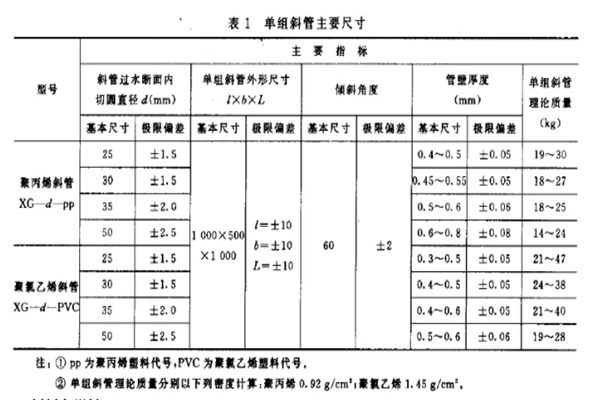 ??? 斜管尺寸應(yīng)符合表 1的規(guī)定。