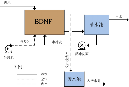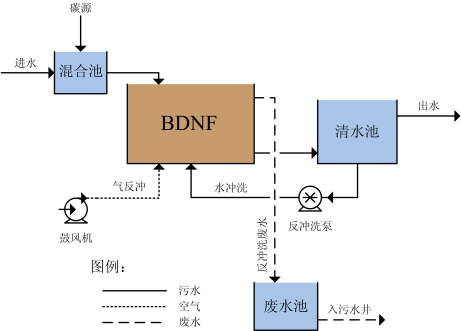深床反硝化濾池的工作原理:本次深度處理工藝主要目的為去除SS/TN/TP,采用深床濾池微絮凝直接過濾。冬季可作為去除TN的保障措施,深床濾池可作為深床反硝化濾池使用,使得SS及TN出水達(dá)到**A標(biāo)準(zhǔn)。深床濾池工藝流程圖如下: