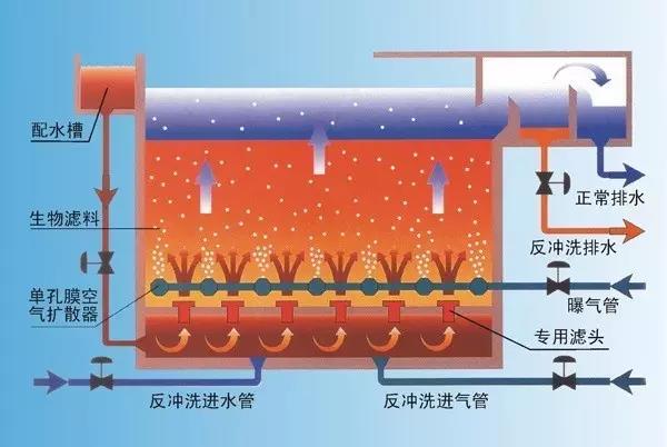 另外一種是同步沉淀與絮凝過濾,即在曝氣生物濾池中投加化學(xué)藥劑,沉淀物積聚在填料中,通過周期性反沖洗,將磷排出系統(tǒng)外,達(dá)到除磷的目的,該工藝藥劑量相對較小,但是污泥被截留在曝氣生物濾池內(nèi),會(huì)縮短生物濾池的運(yùn)行周期,增加反沖洗的頻率。